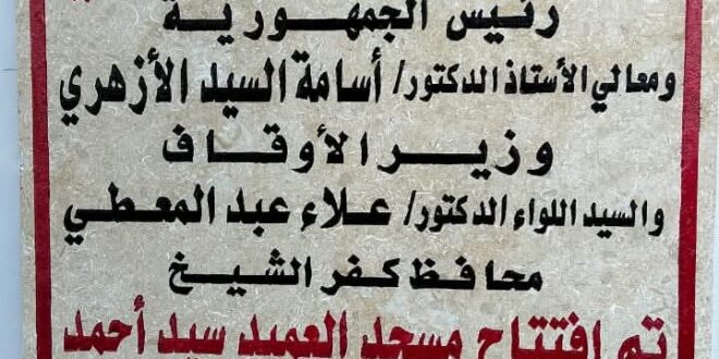 محافظ كفرالشيخ: افتتاح مسجد العميد سيد أحمد بسيدي سالم تحت شعار “خدمة بيوت الله شرف”