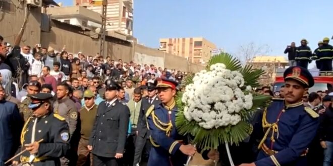 اللواء دكتور علاء عبدالمعطي محافظ كفرالشيخ يتقدم الجنازة العسكرية لشهيد الواجب النقيب عمر معاني معاون مباحث مركز شرطة الحامول