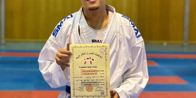 محافظ كفرالشيخ يهنئ البطل أحمد عبدالمعطي لفوزه ببطولة الجمهورية للكاراتيه للمرة الخامسة على التوالي
