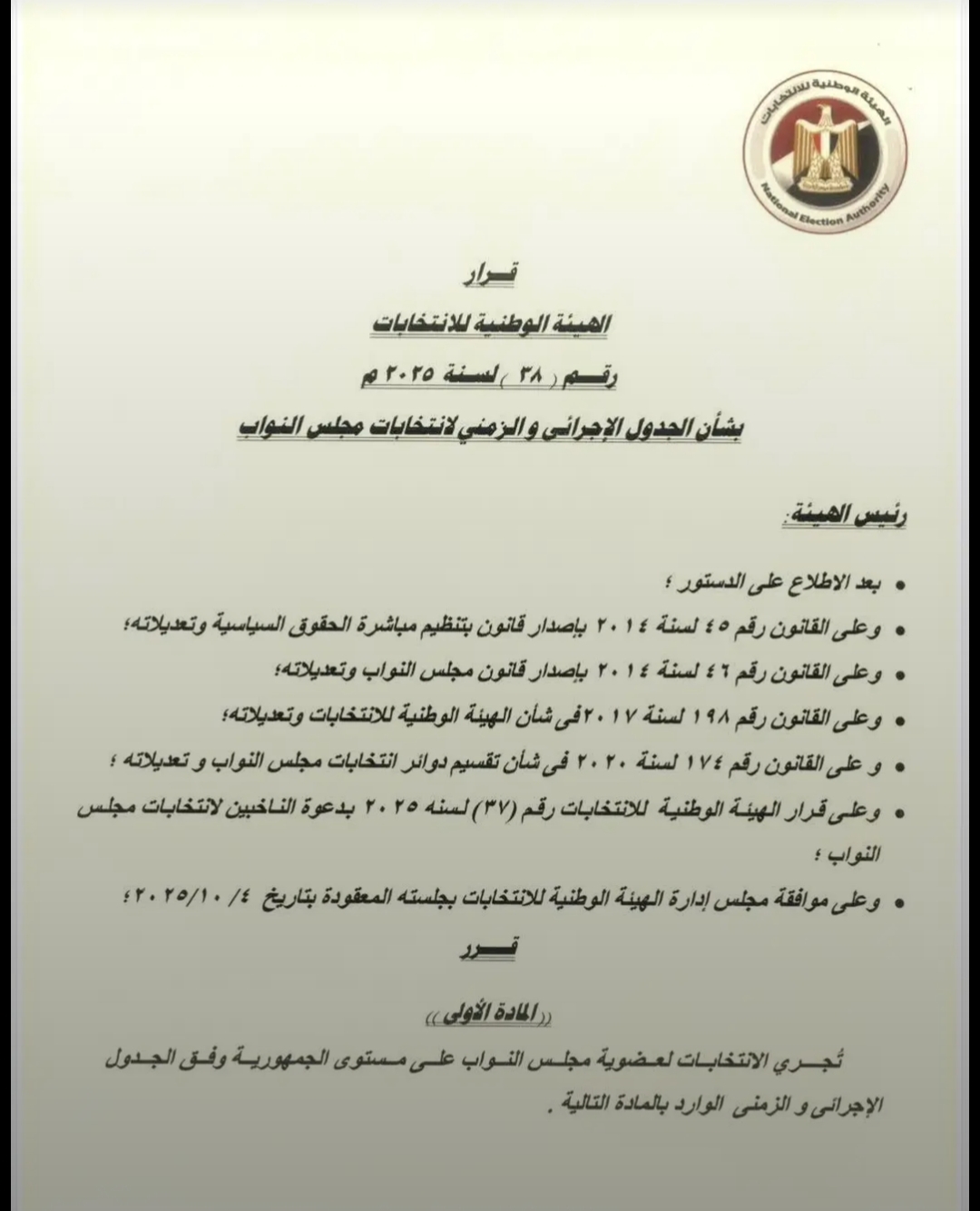 قرار اللجنة الوطنية للانتخابات رقم 38لسنة 2025 بشأن الجدول الاجرائي والزمني لانتخابات مجلس النواب مقالات مشابهة غدا السبت قطع التيار الكهربائي عن مناطق بمدينة دسوق بكفر الشيخ لمدة 4 ساعات يوم واحد مضت لمدة 10 ساعات اليوم وغدا.. انقطاع مياه الشرب عن مركز الرياض بكفر الشيخ 3 أيام مضت انقطاع المياه عن مدينة الرياض و8 قرى تابعة بكفر الشيخ 9 ساعات في هذا الوقت 5 أيام مضت نقله:محمد سيف شاركها tweet