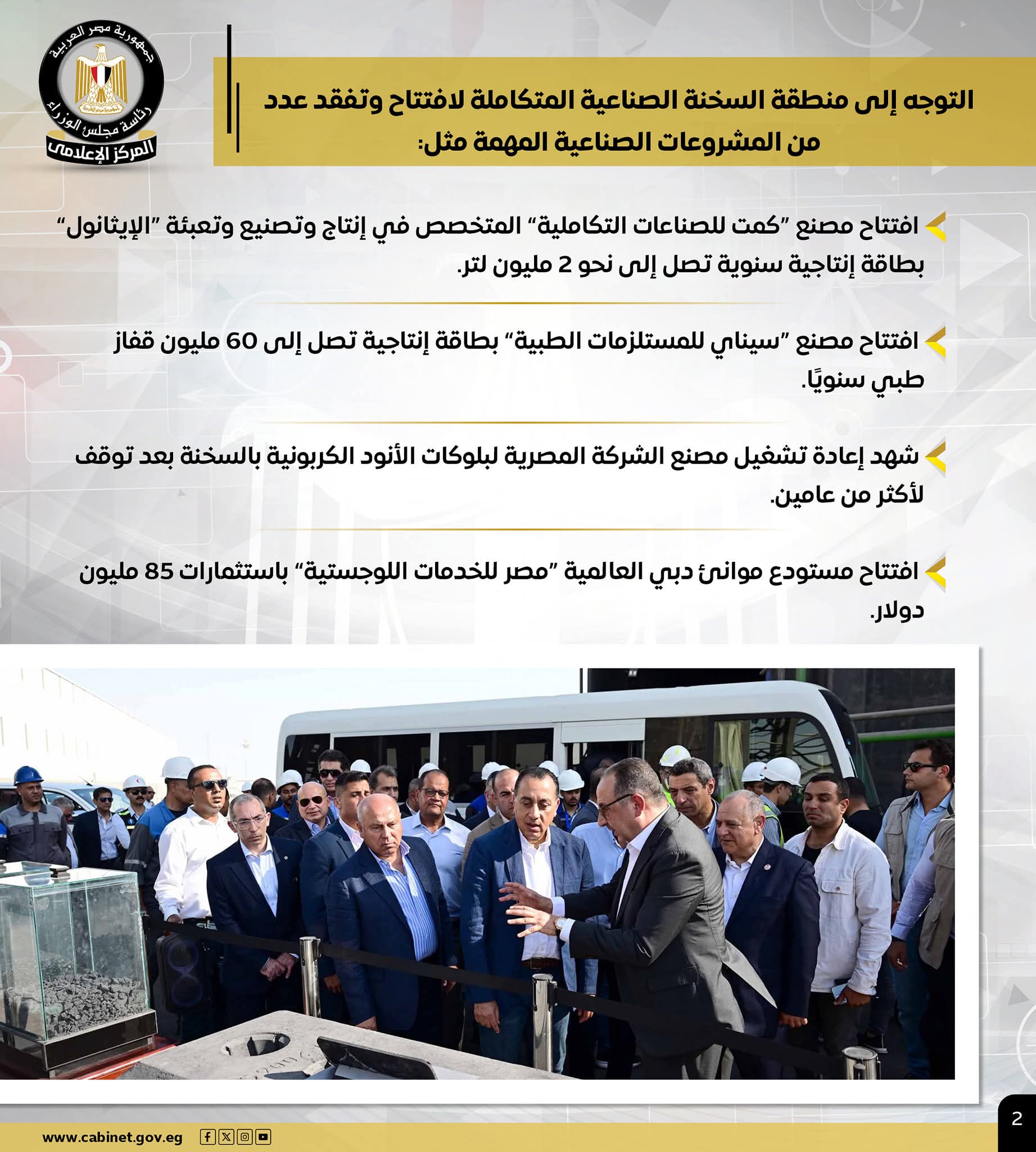 – إطلاق مشروعات صناعية كبرى خلال جولة رئيس الوزراء بمنطقة السخنة الصناعية المتكاملة