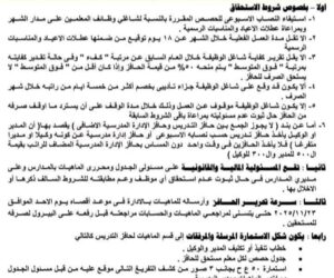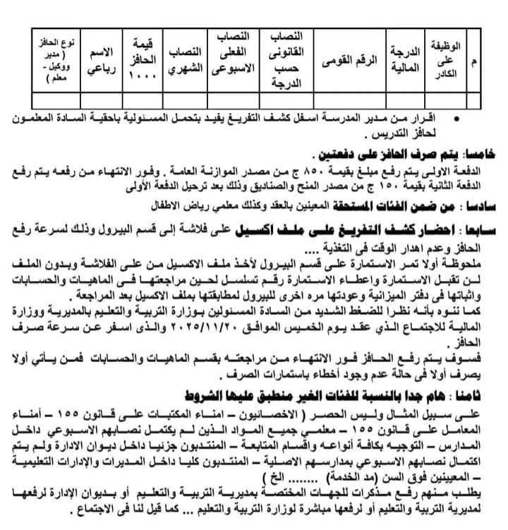 استيفاء النصاب الاسبوعي من الحصص المقررة طوال الشهر للمعلمين مع مرعاة الاجازات الرسمية