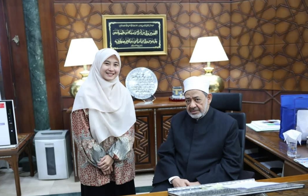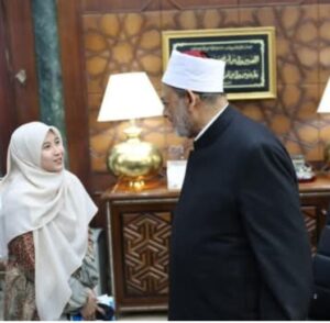 استقبل فضيلة الإمام الأكبر الأستاذ الدكتور أحمد الطيب، شيخ الأزهر الشريف، اليوم الأربعاء، بمكتبه بمشيخة الأزهر، الطالبة الإندونيسية «ييلي»، التي أعربت عن أمنيتها لقاء فضيلته خلال حفل تخرجها بجامعة الأزهر، حيث رحَّب بها وأشاد بتفوقها العلمي.