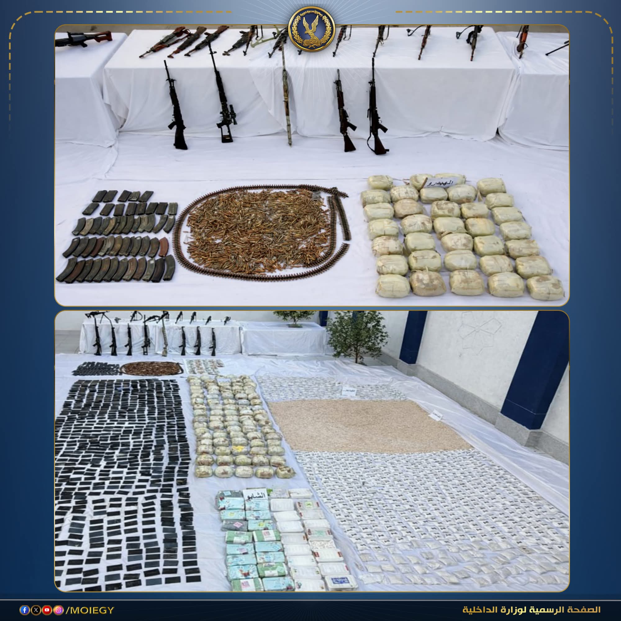 فى إطار جهود أجهزة وزارة الداخلية لضبط العناصر الإجرامية الخطرة من جالبى ومتجرى المواد المخدرة والأسلحة النارية غير المرخصة.. فقد أكدت معلومات وتحريات قطاع الأمن العام بالتنسيق مع أجهزة الوزارة المعنية قيام بؤرة إجرامية تضم (5 عناصر إجرامية شديدة الخطورة محكوم عليهم بالسجن فى جنايات “مخدرات – سلاح نارى – شروع فى قتل – إتلاف عمد”) بجلب كميات من المواد المخدرة المتنوعة والأسلحة النارية غير المرخصة تمهيداً للإتجار بها وتهريب بعضها لخارج البلاد وقيامهم بتجهيز أحد المخازن السرية على ضفاف نهر النيل بدائرة مركز شرطة دشنا بقنا لإخفاء وبيع المواد المخدرة.