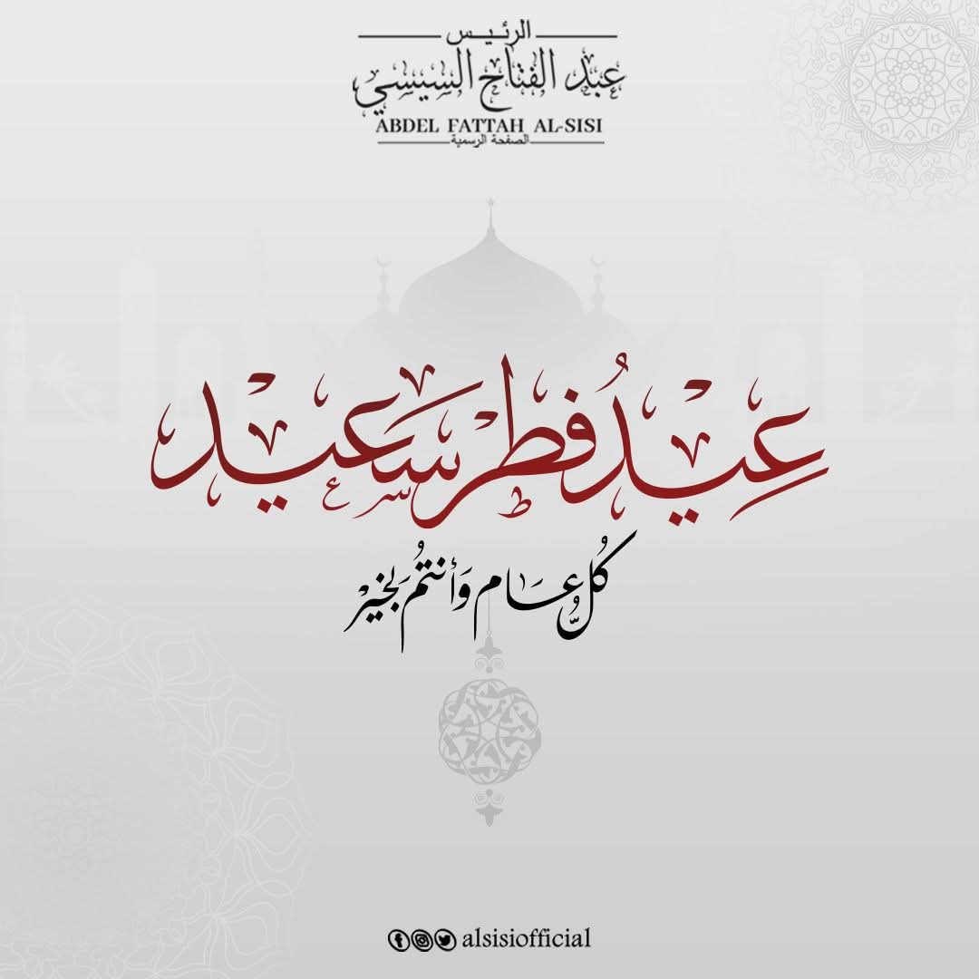 الرئيس عبد الفتاح السيسي يقدم التهنئة إلى الشعب المصري العظيم، وإلى شعوب أمتينا العربية والإسلامية، بمناسبة عيد الفطر المبارك.