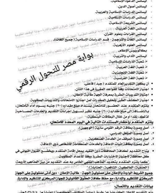 ومن المقرر فتح التقديم اعتبارًا من ٤ حتى ١٨ مايو القادم، من خلال بوابة الوظائف الحكومية عبر الرابط التالي: